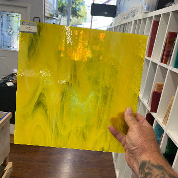 Oceanside’s Fusible Range glass offers the same high-quality craftsmanship and firing characteristics you expect from Oceanside Glass & Tile, but with a twist. These sheets are Oceanside Compatible in formula, yet they fall just outside the manufacturer’s strict standards for color, texture, or opacity. That means you may see subtle variations from standard Oceanside Compatible glass — sometimes lighter, darker, or with unique surface patterns that make each sheet one-of-a-kind.